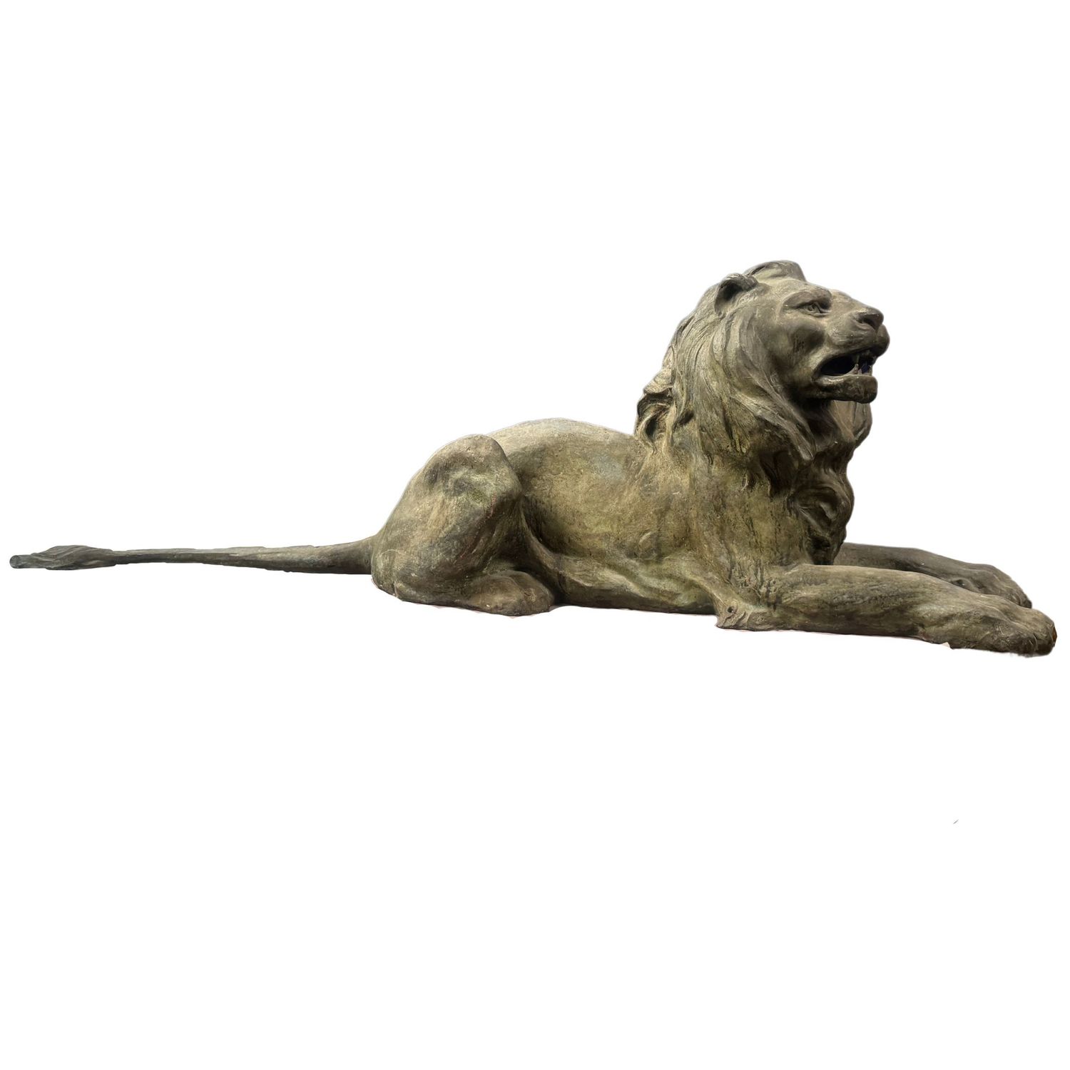 Scultura in bronzo patinato, raffigurante Leone periodo XIX secolo.