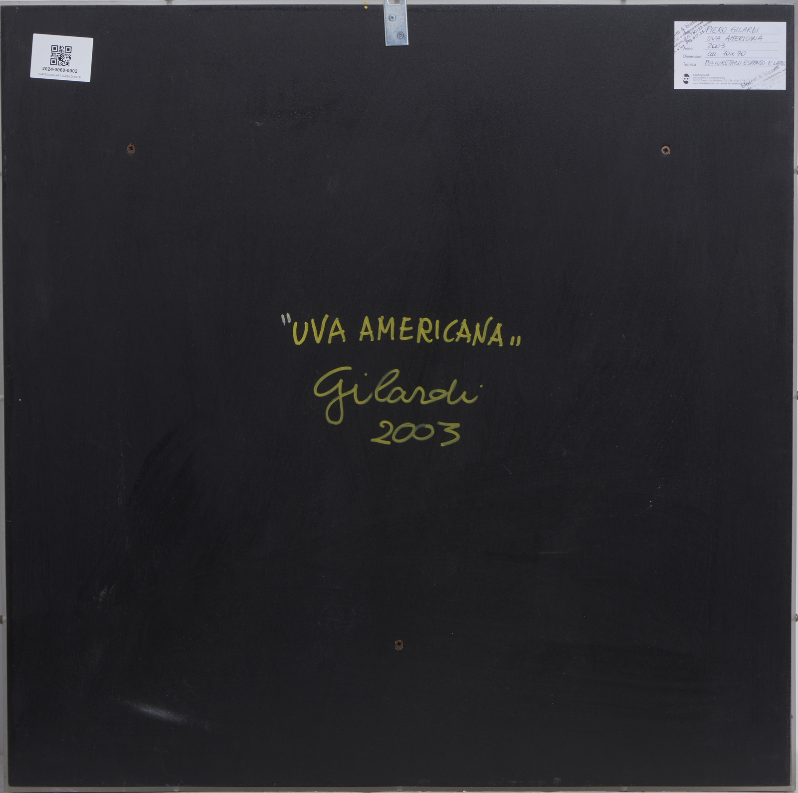 GILARDI PIERO (1942 - 2023) UVA AMERICANA, 2003. 2003. poliuretano espanso dipinto, entro teca di plexiglass. Cm 69,50 x 69,50. sul retro: titolo, firma, data; etichetta Galleria Biasutti & Biasutti, Torino