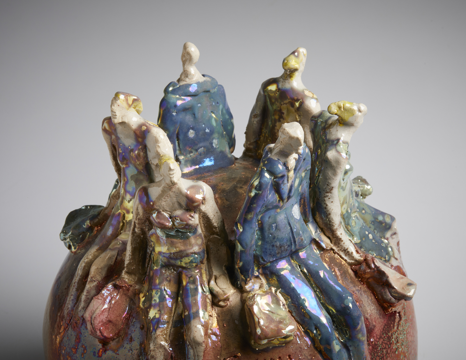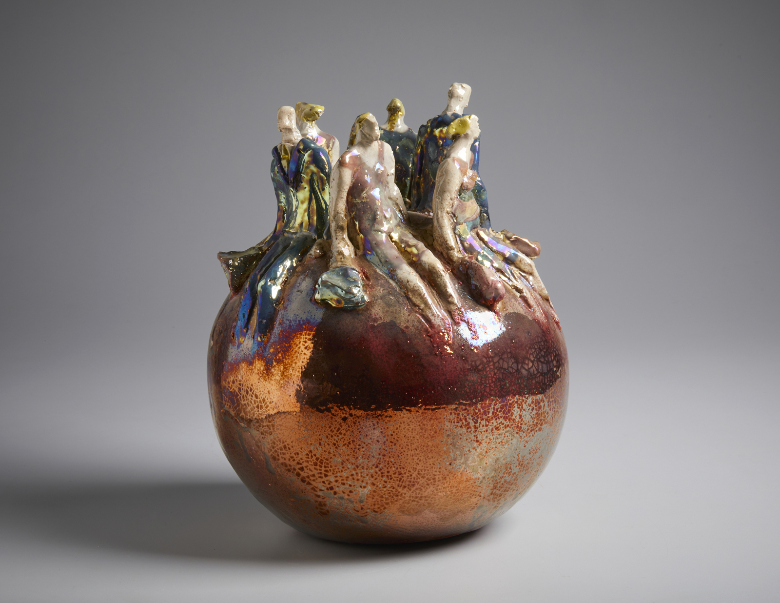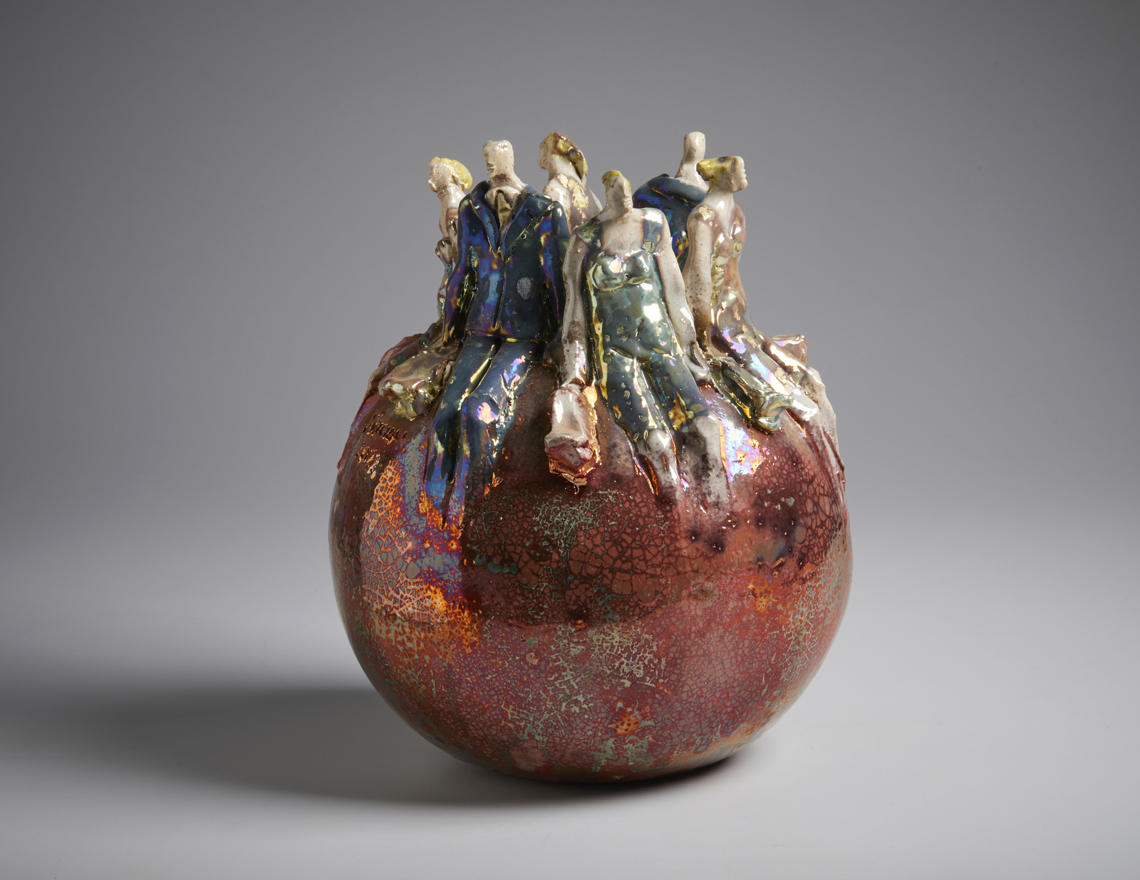 STACCIOLI PAOLO (n. 1943) PALLA CON FIGURE, 2022. ceramica policroma invetriata.. Cm 31,50. firma e data alla base