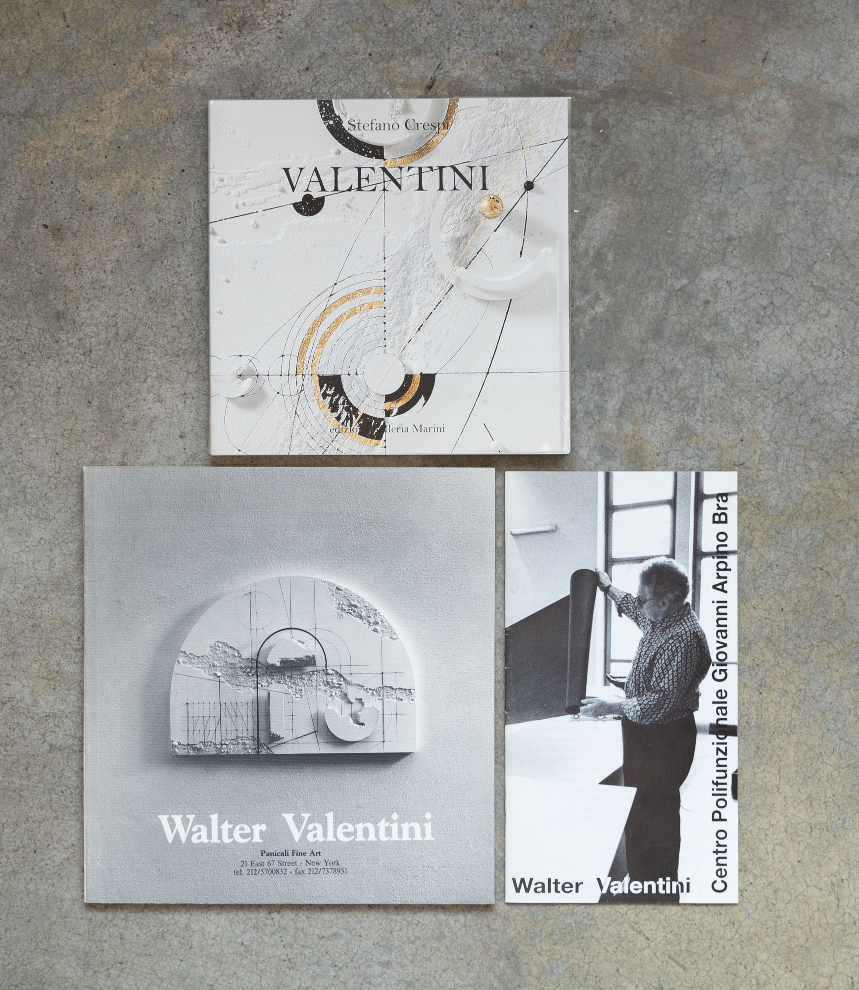 WALTER VALENTINI(1928)Lotto di tre cataloghiValentini2013Catalogo illustrato edito in occasione della mostra tenutasi presso la Galleria Marini, Milano (9 maggio - 29 giugno 2013), es. 230/350, numerato sull'ultima pagina18 x 18 cmEdizione della galleriaSenza difettiMeasure, time1990Catalogo illustrato edito in occasione della mostra tenutasi presso la galleria Panicali Fine Art, New York (10 ottobre - 10 novembre 1990)22 x 21 cmEdizione della galleriaSenza difettiWalter Valentini1992Catalogo illustrato edito in occasione della mostra tenutasi presso Spazio Polifunzionale Giovani Arpino, Bra (8 giugno - 11 luglio 1992)22 x 12 cmSenza difetti