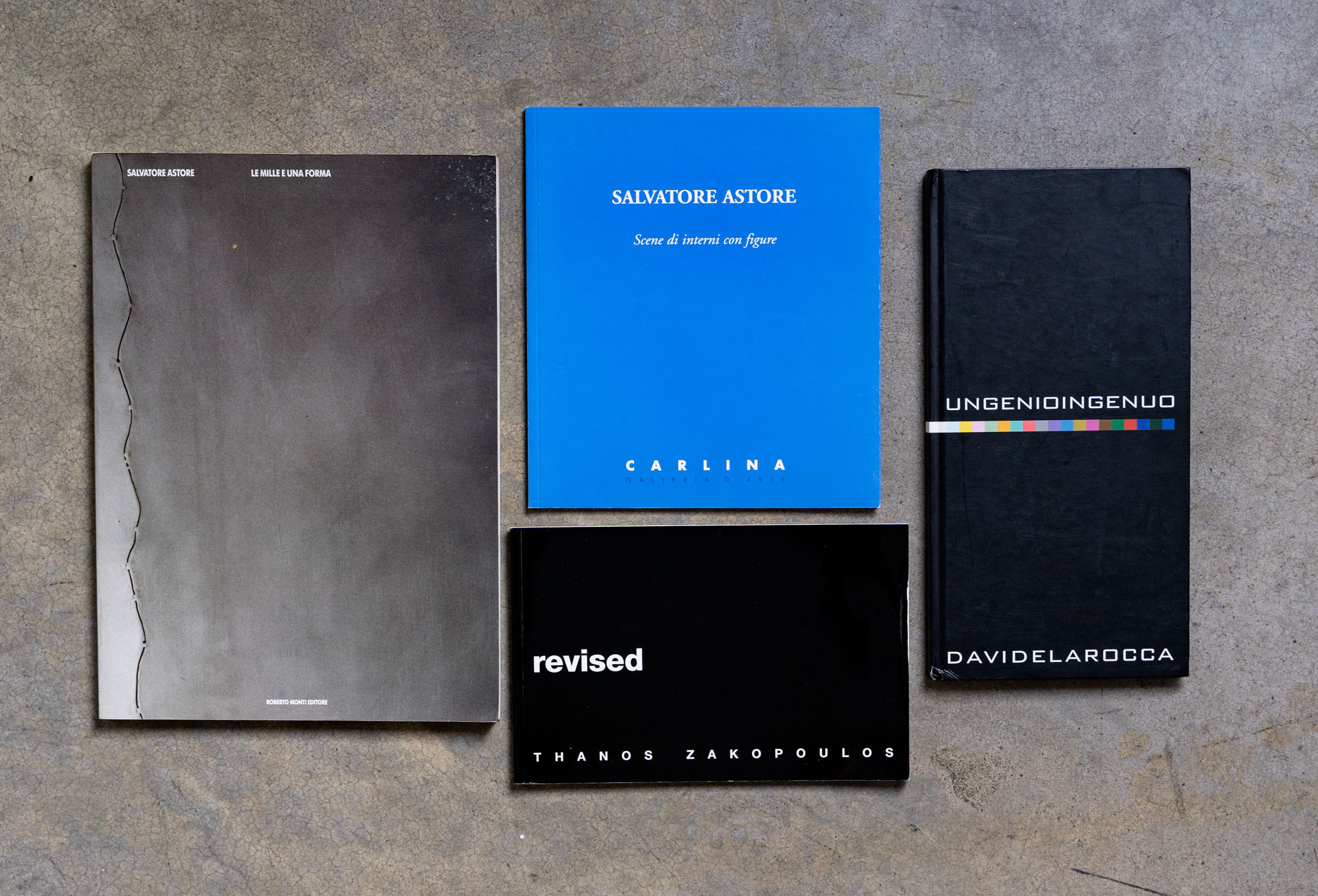 LOTTO MULTIPLOLotto di quattro cataloghiDavide La Rocca - Ungenioingenuo2002Catalogo illustrato30,5 x 15,5 cmEdizione Studio d'Arte CannevielloDifetti Salvatore Astore - Scene di interni con figure2003Catalogo illustrato24 x 21 cmEdizione Carlina Galleria d'ArteSenza difettiSalvatore Astore - Le mille e una forma1989Catalogo illustrato34 x 24 cmRoberto Monti EditoreDifettiThanos Zakopoulos - Anatomy revised2006Catalogo illustrato16 x 24 cmEdizione Unorossodue Spazio per l'Arte Contemporanea Senza difetti