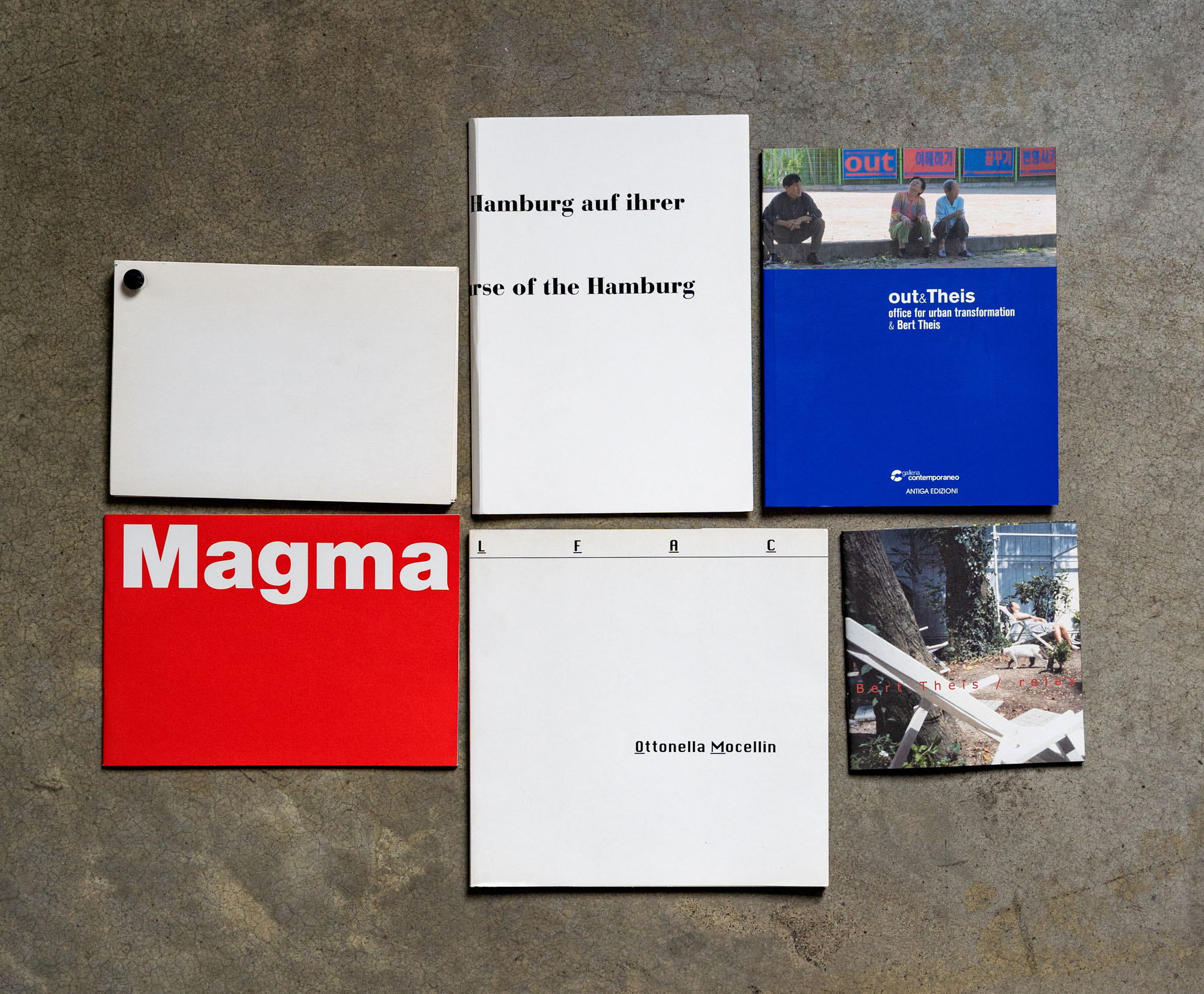 LOTTO MULTIPLOLotto di sei cataloghiBert Theis - Relax2001Catalogo illustrato 14 x 14 cmEdizione Galerie Erna HéceySenza difettiLuca Christian Mander2006Catalogo illustrato13,5 x 20 cmEdizione Unorossodue Spazio Per l'Arte Contemporanea DifettiMarcella Vanzo - Magma2003Catalogo illustrato15 x 21 cmEdizione Prometeo, Associazione Cultura per l'Arte Contemporanea Senza difettiOut & Theis. Office for urban transformation & Bert Theis2010Catalogo illustrato21 x 17 cmAntiga EdizioniSenza difettiDaniel Maier-Reimer - Umrundung der Stadt Hamburg auf ihrer Landesgrenze (Walk following the course of the Hamburg state boundary)2011Libro d'artista23,5 x 16 cmDifettiOttonella Mocellin - A darkness betond the reach of vision1999Catalogo illustrato21 x 21 cmEdizione LFACDifetti