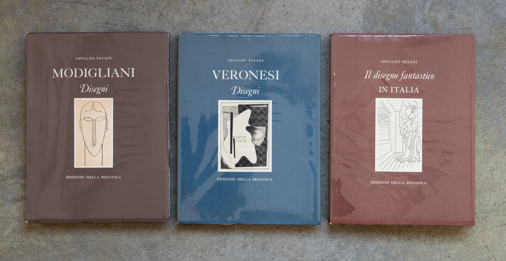 AUTORI VARILotto di tre cataloghiVeronesi - Disegni1976Catalogo monografico illustrato, es. 768/1200, numerato sull'ultima paginaEdizioni della SeggiolaDifettiModigliani - Disegni1976Catalogo monografico illustrato, es. 777/1500, numerato sull'ultima paginaEdizioni della SeggiolaDifettiIl disegno fantastico in Italia1977Catalogo monografico illustrato, es. 322/1500, numerato sull'ultima paginaEdizioni della SeggiolaDifetti