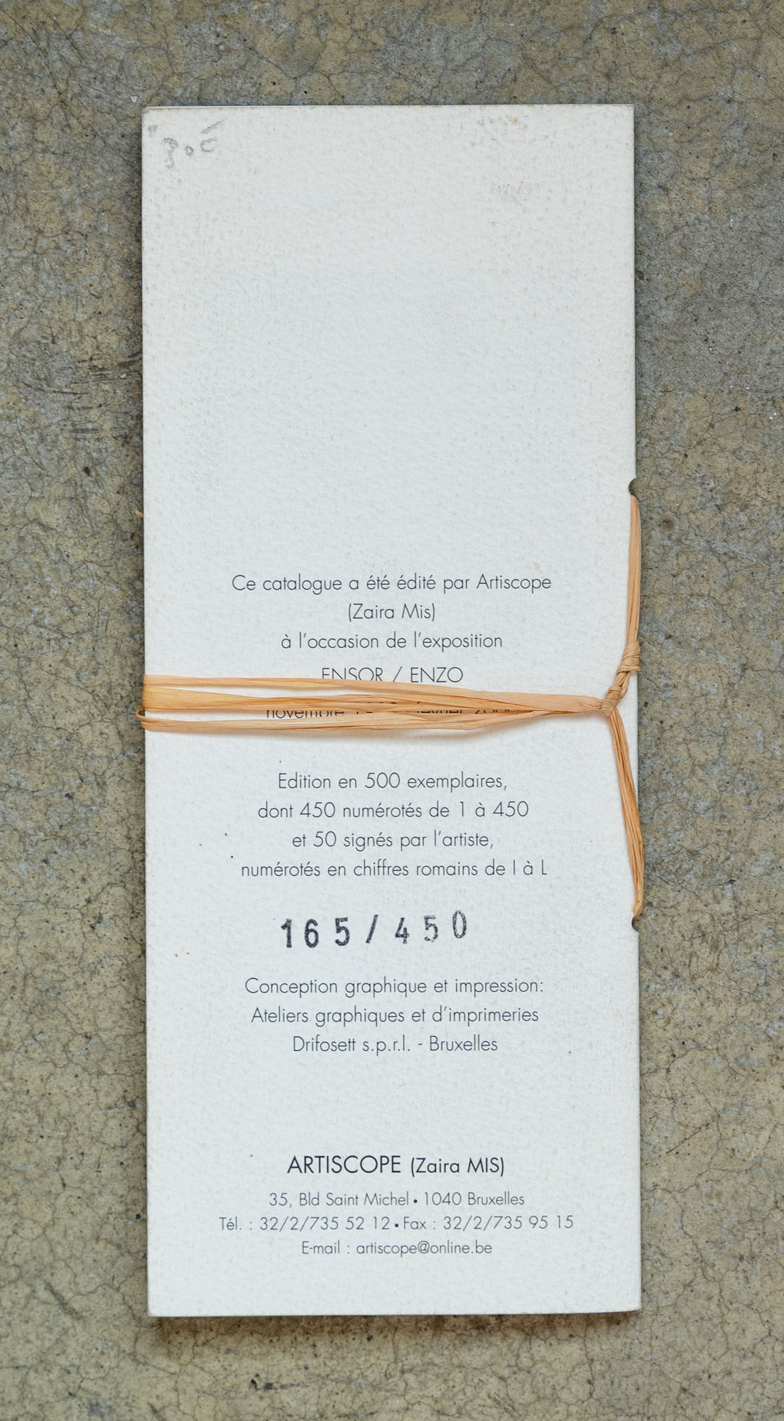 ENZO CUCCHI(1949)Ensor/Enzo1999Catalogo illustrato edito in occasione delle mostra tenutasi presso la galleria Artiscope, Bruxelles (novembre 1999 - febbraio 2000), es. 165/45022 x 9 cmEdizione della galleriaSenza difetti
