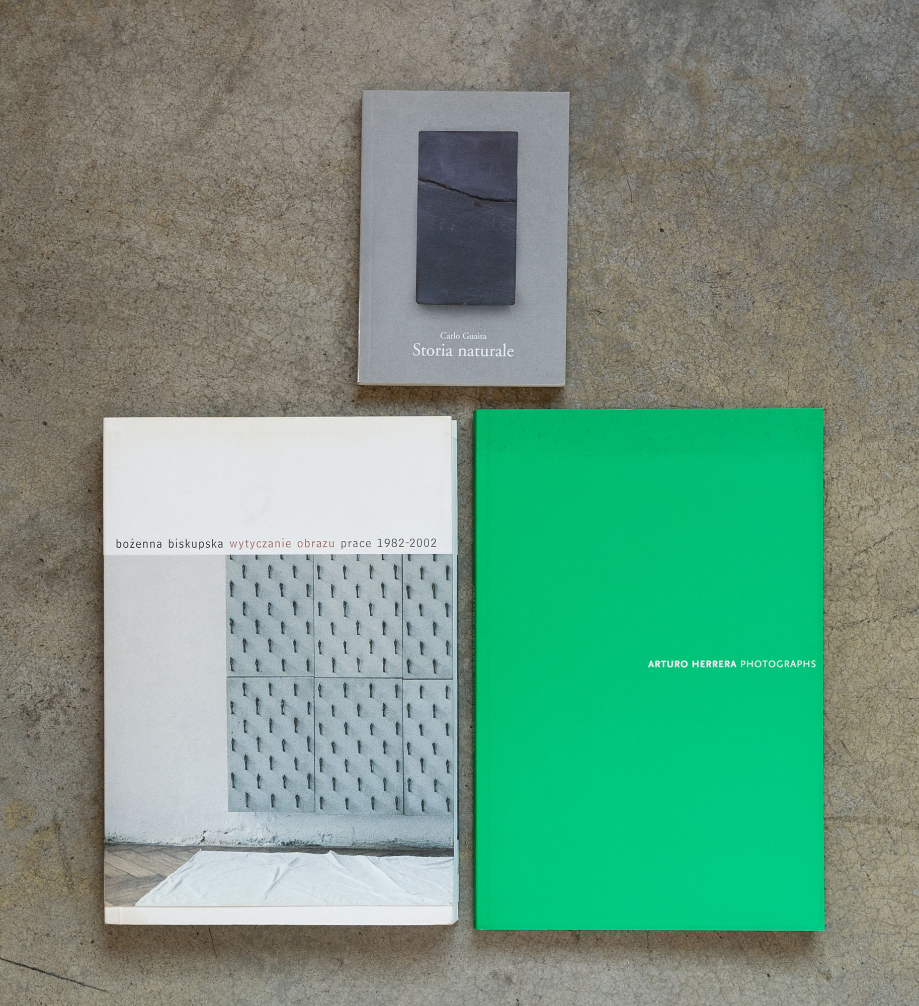 LOTTO MULTIPLOLotto di tre cataloghiCarlo Guaita - Storia naturale2007Catalogo monografico illustrato17 x 12 cmEdizione Gli OriSenza difettiArturo Herrera - Photographs2004Catalogo monografico illustrato30 x 20 cmEdizione Galleria Franco Noero e Sikkema Jenins & Co.Senza difettiBozenna Biskupska - Wytyczanie Obrazu Prace 1982 - 20022003Catalogo monografico illustrato edito in occasione delle mostre personali presso il Palac Krolikarnia - Muzeum Rzezby, Dunikowskiego, Galeria Sztuki Program, Varsavia, Centrum Rzezby Polskiej, Oronsku29 x 20 cmSenza difetti