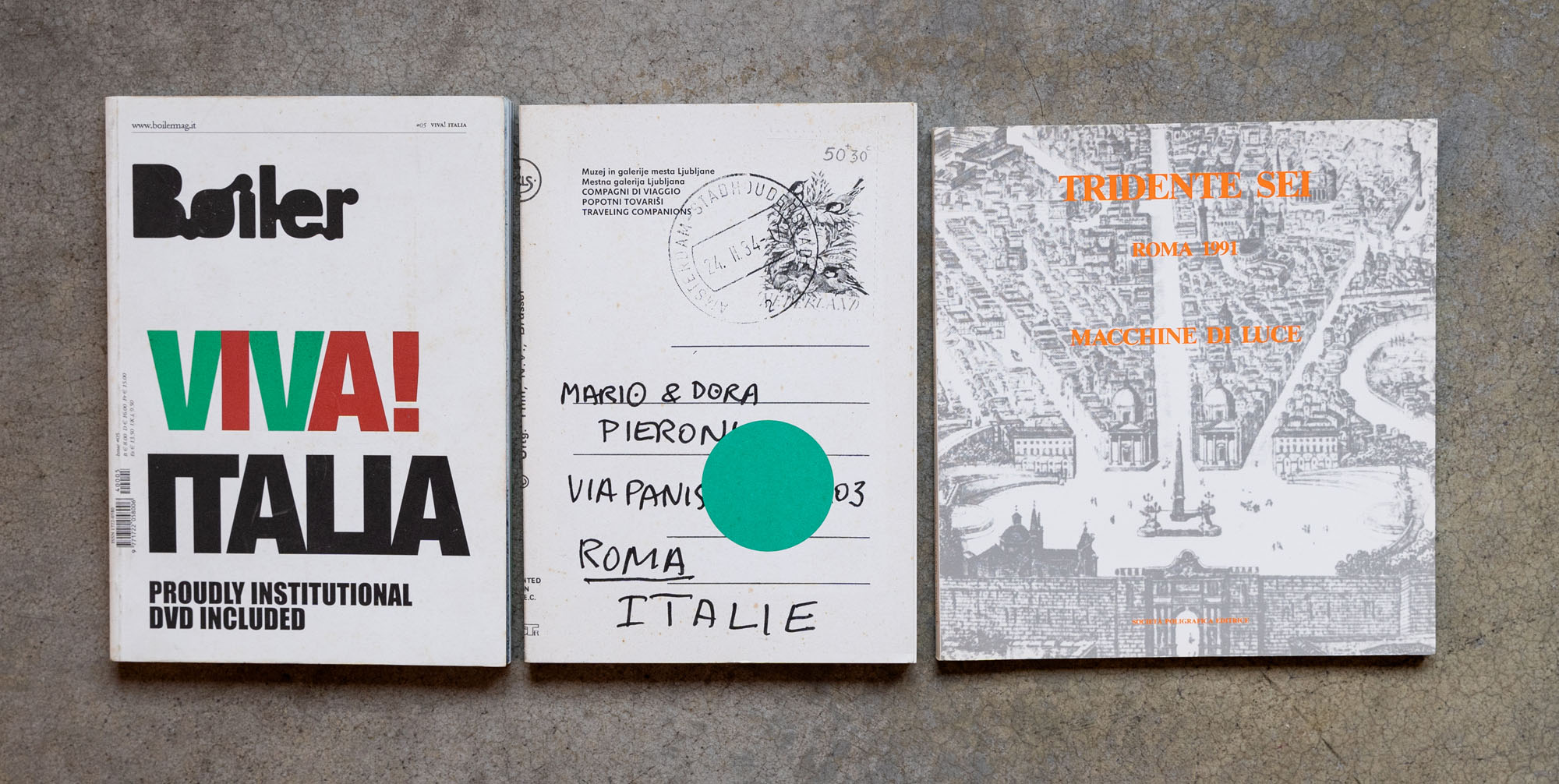 LOTTO MULTIPLOLotto di tre cataloghiViva! Italia 2004Periodico, n.524 x 17 cmEdizione BoilerDifetti Compagni di viaggio / Popotni tovarisi / Travelling companions2011Catalogo illustrato edito in occasione della mostra tenutasi presso il Museo e Galleria della città di Lubiana Galleria civica, Lubiana (20 gennaio - 6 marzo 2011) 23,5 x 16,5 cmEdizione del museoDifettiTridente sei. Roma 1991. Macchine di luce1991Catalogo illustrato edito in occasione della VI edizione della manifestazione d'arte 'Tridente' tenutasi presso diverse gallerie di Roma22,5 x 21 cmSocietà Poligrafica EditriceDifetti