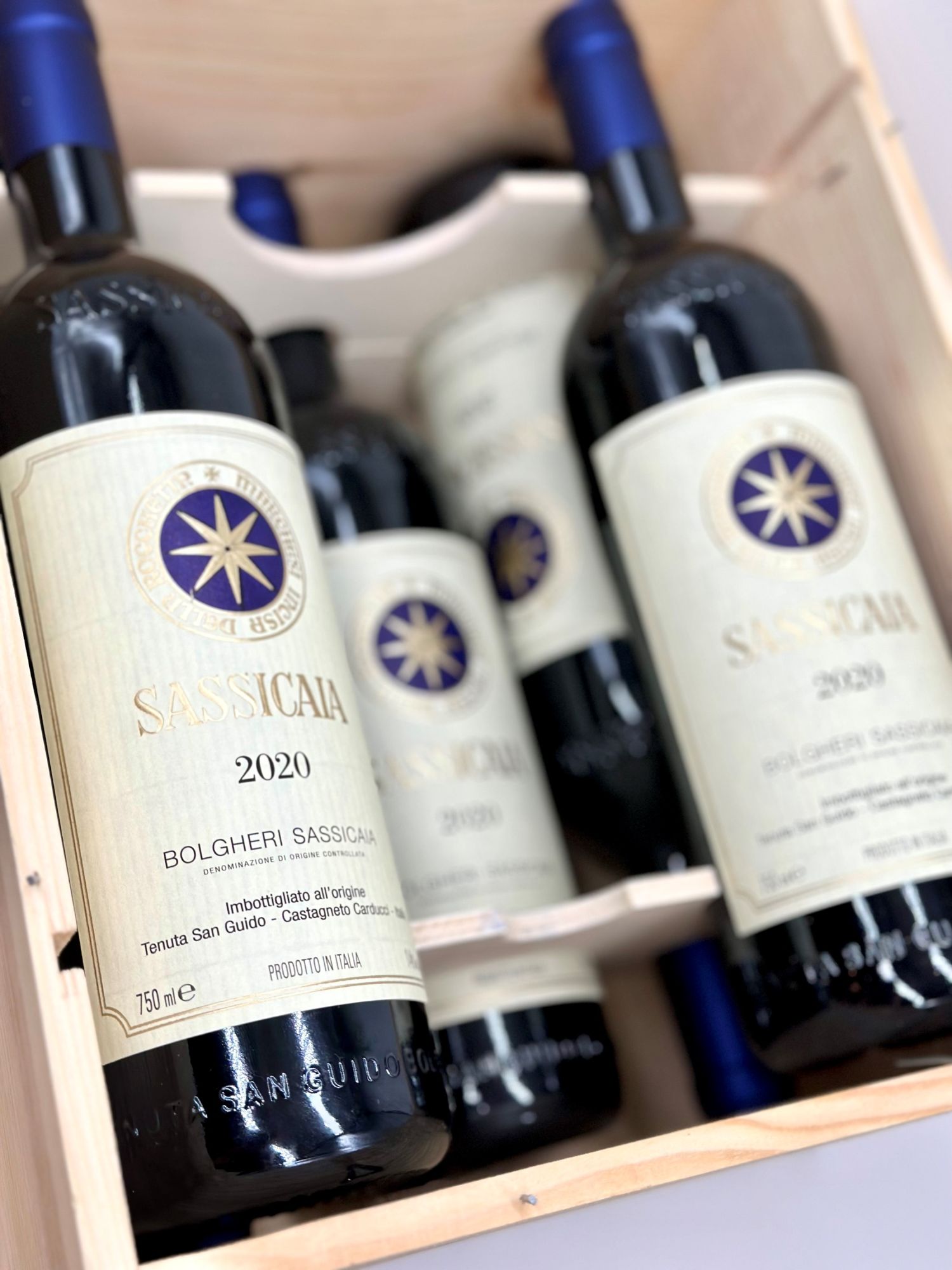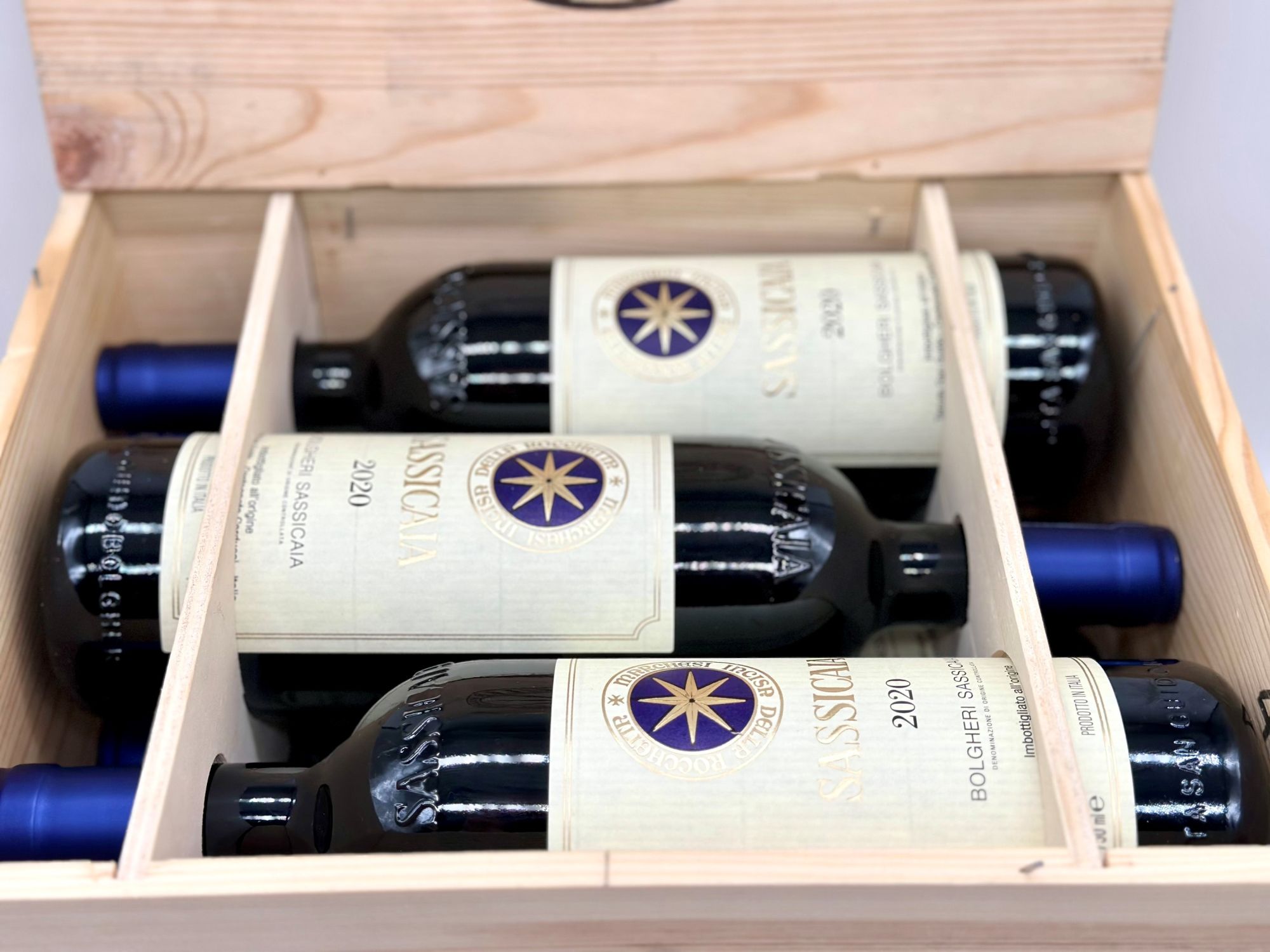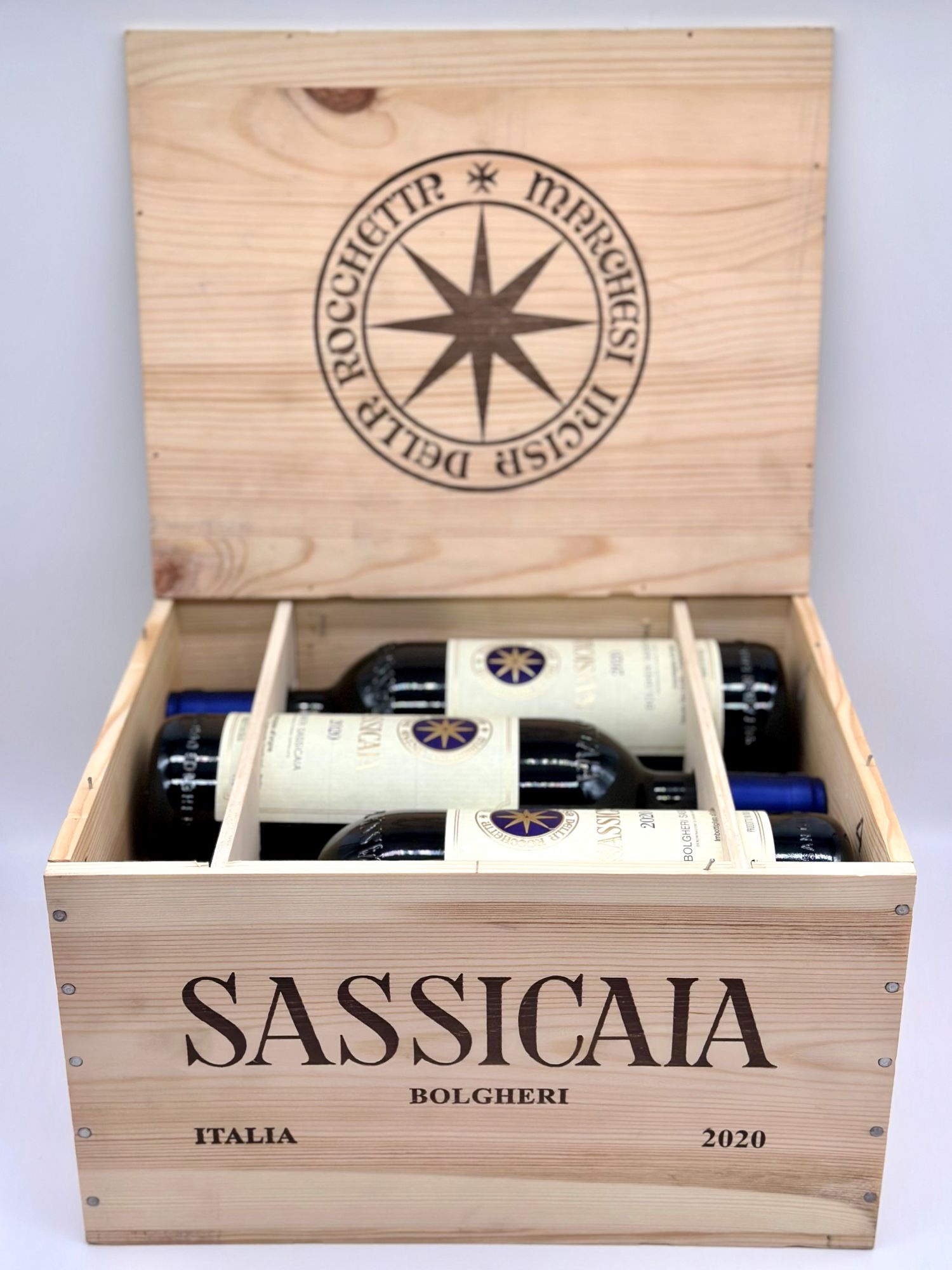 Italia-Toscana 0,75 Toscana, Sassicaia DOC - 6 bottiglie (bt), annata 2020. Livello: entro il collo (WN). Confezione: scatola di legno originale (OWC). Condition report: etichetta e capsula in perfette condizioni.