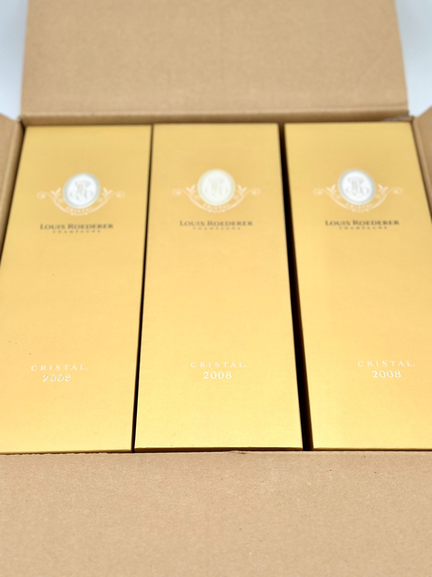 Francia-Champagne 0,75 Francia, Champagne, Brut - 3 bottiglie (bt), annata 2008. Livello: entro il collo (WN), livello di colmatura standard. Confezione: scatola originale (OC). Condition report: etichetta e capsula in perfette condizioni.