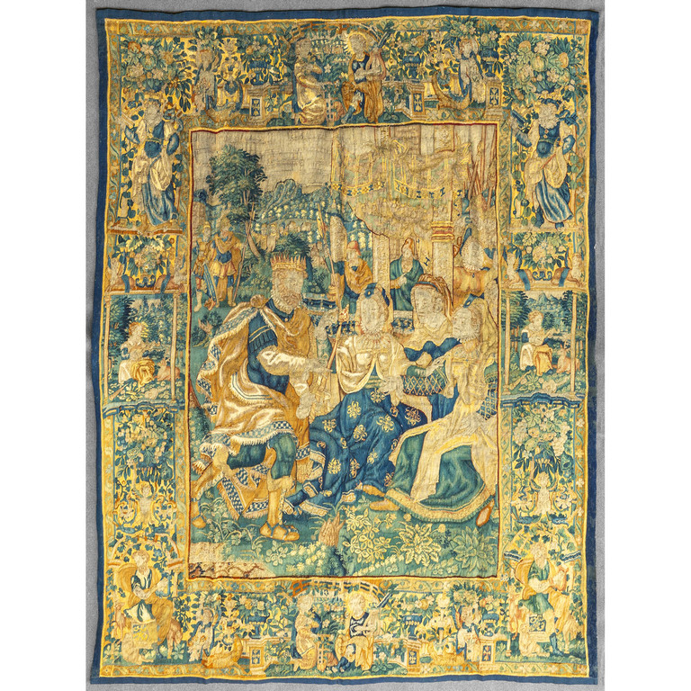 Arazzo raffigurante famiglia reale in un giardino manifattura Oudenaarde fine sec.XVI