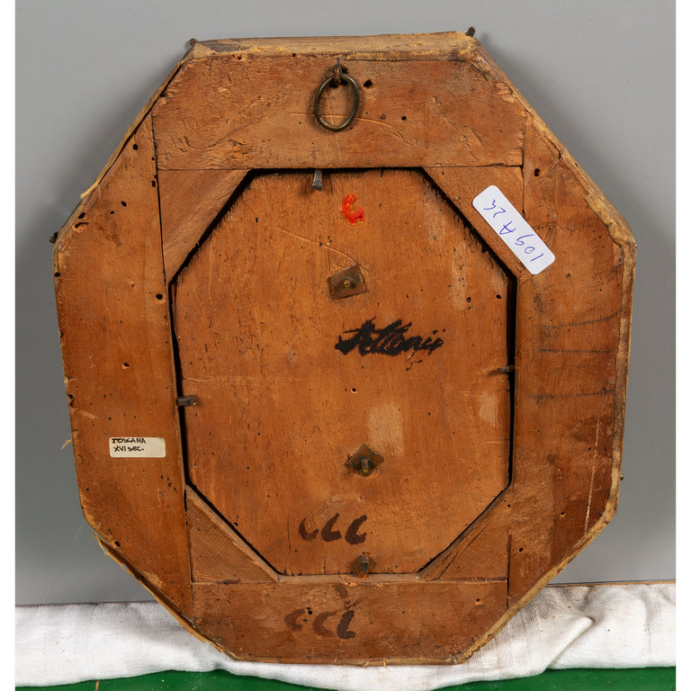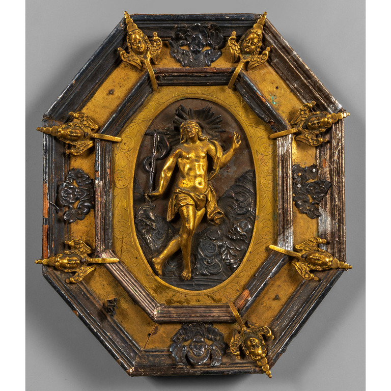 Bassorilievo in bronzo e argento nella sua cornice di origine lastronata in ottone ed intarsiata in argento Toscana sec.XVII