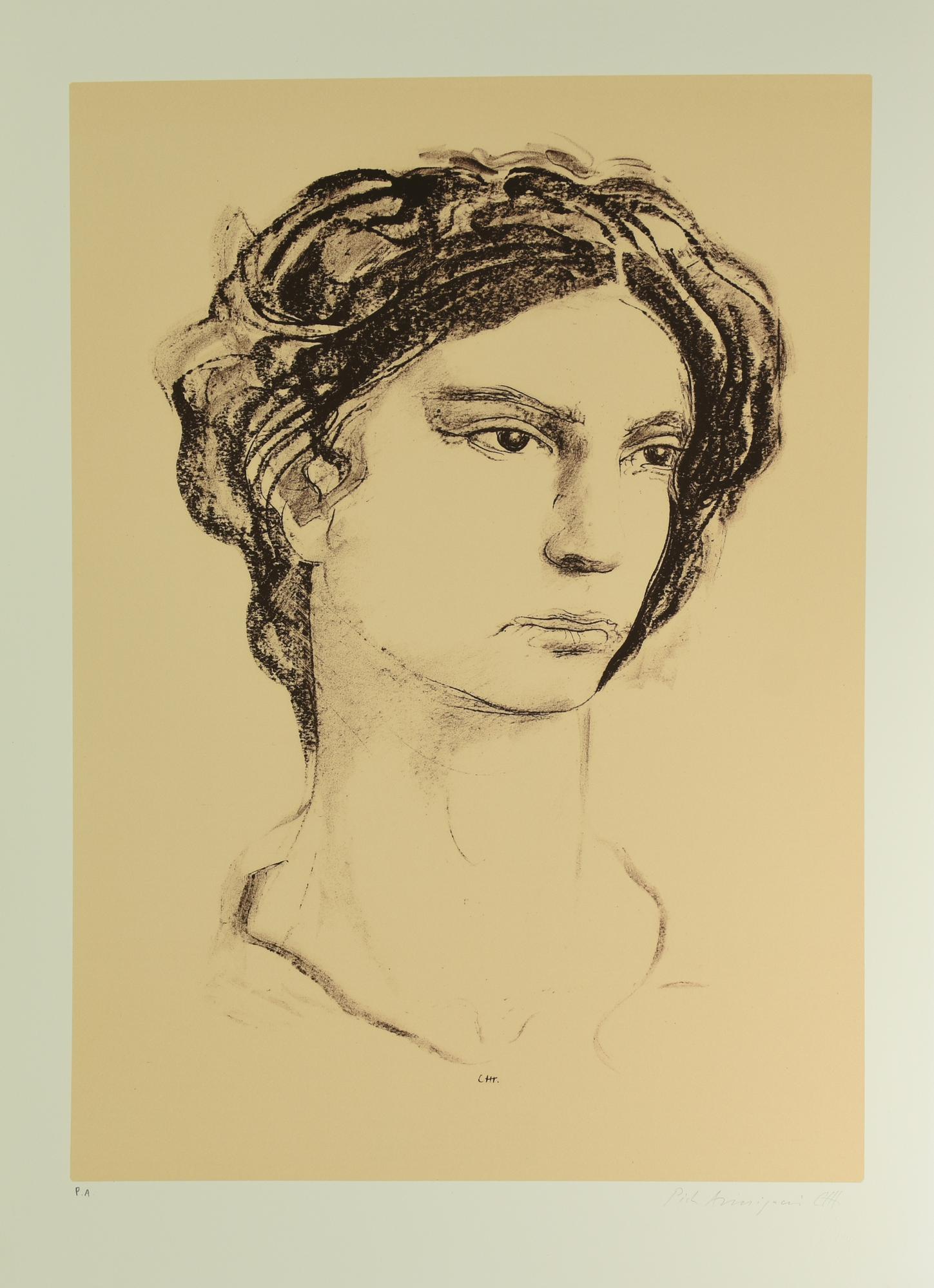 Pietro Annigoni RITRATTO FEMMINILE litografia su carta, cm 70x50; es. P.A....