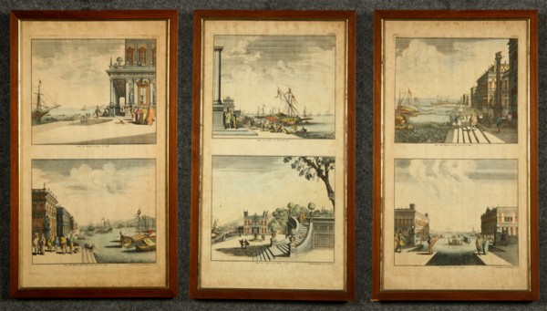 Tre incisioni su carta raff. ''VENEZIA'' e ''LIVORNO''. Stampatore P. MORTIER Amsterdam. XVIII secolo. In cornice. Mis. Lung. cm. 30 Alt. cm. 50 ca.