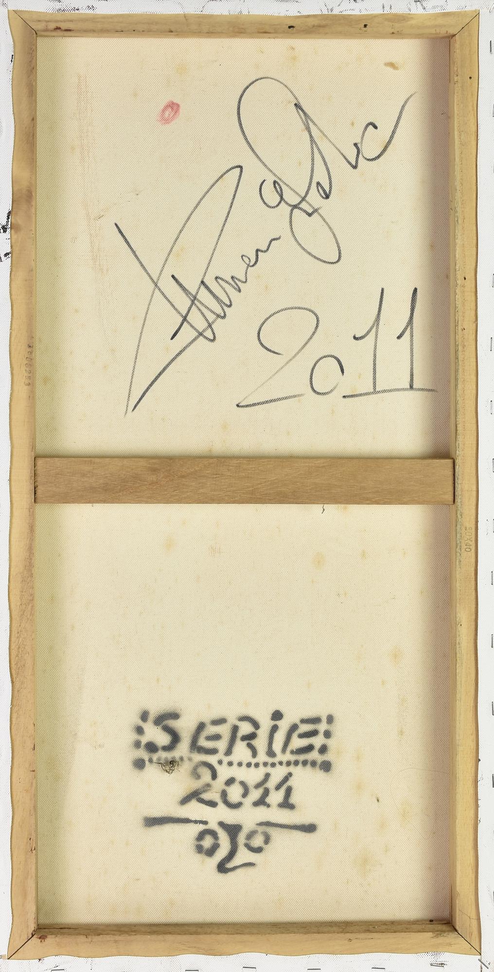 Fabio Cuman SERIE 2011, 2011 tecnica mista su tela, cm 80x40 firma sul retro:...