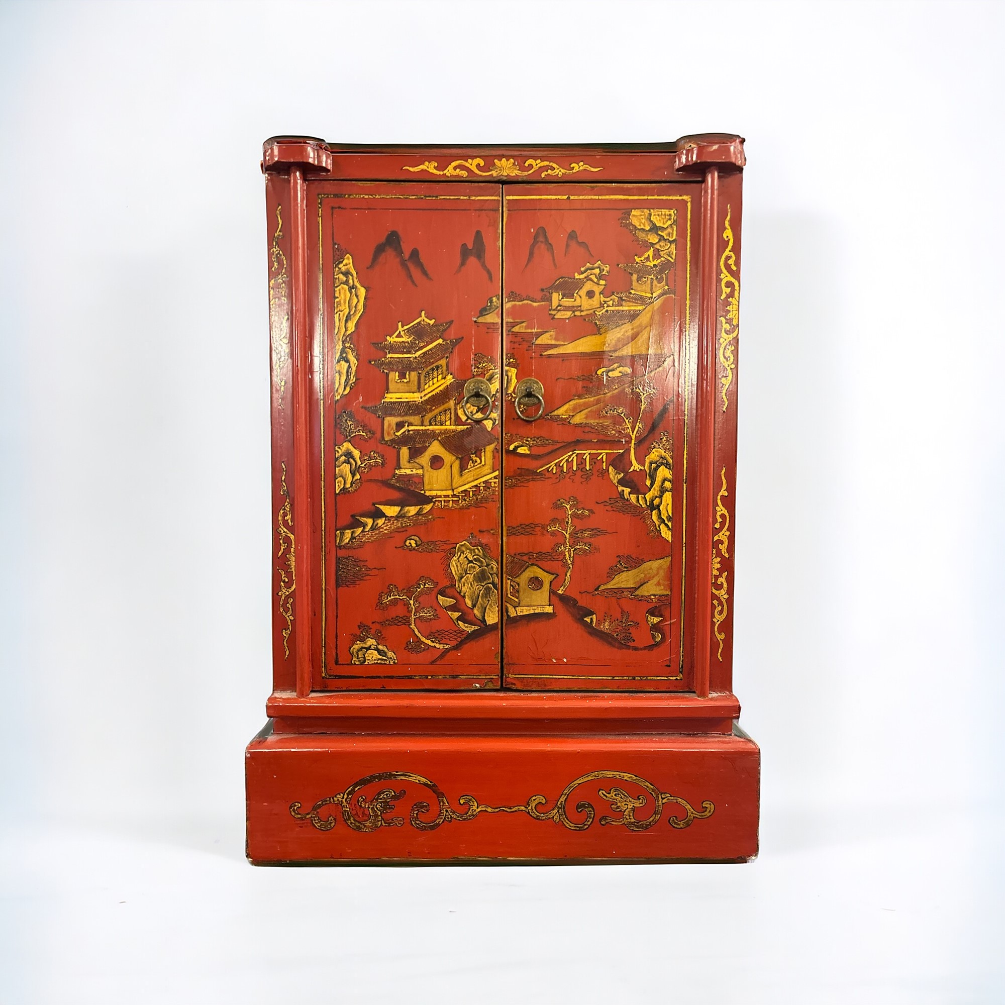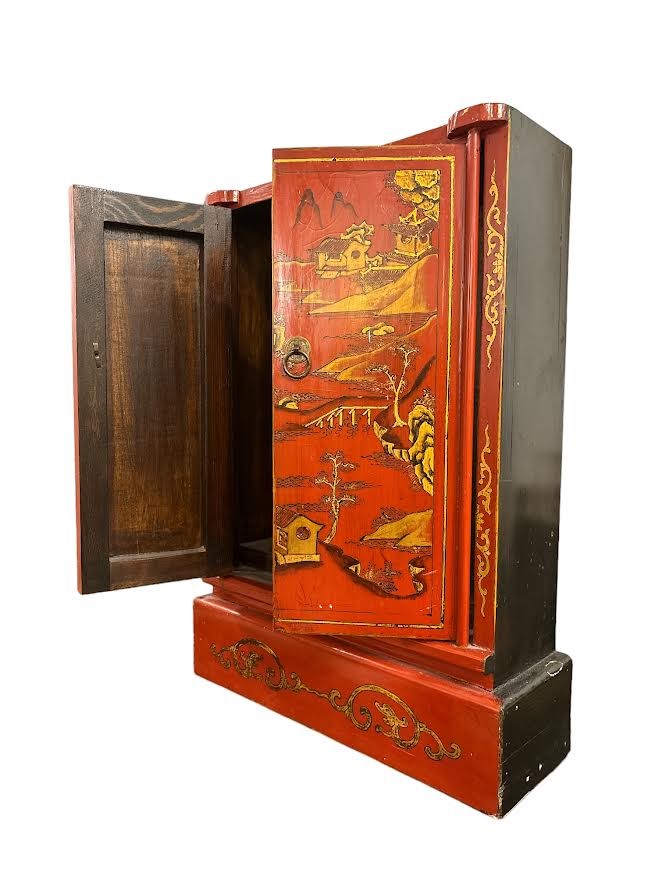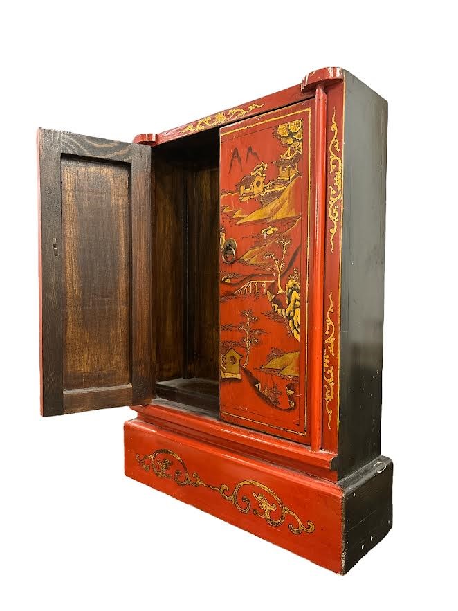 a doppia anta, in lacca rossa decorata a motivi chinoiserie