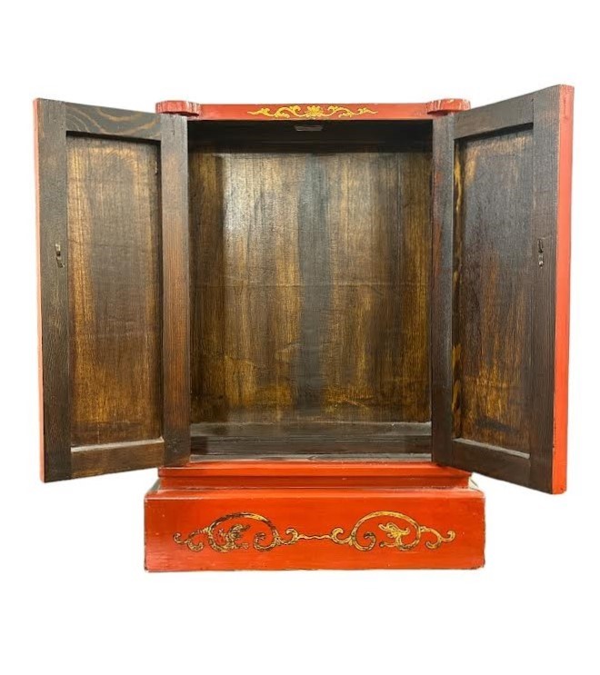 Piccola credenza in lacca rossa manifattura cinese, XX sec. 69 x 50 x 17 cm