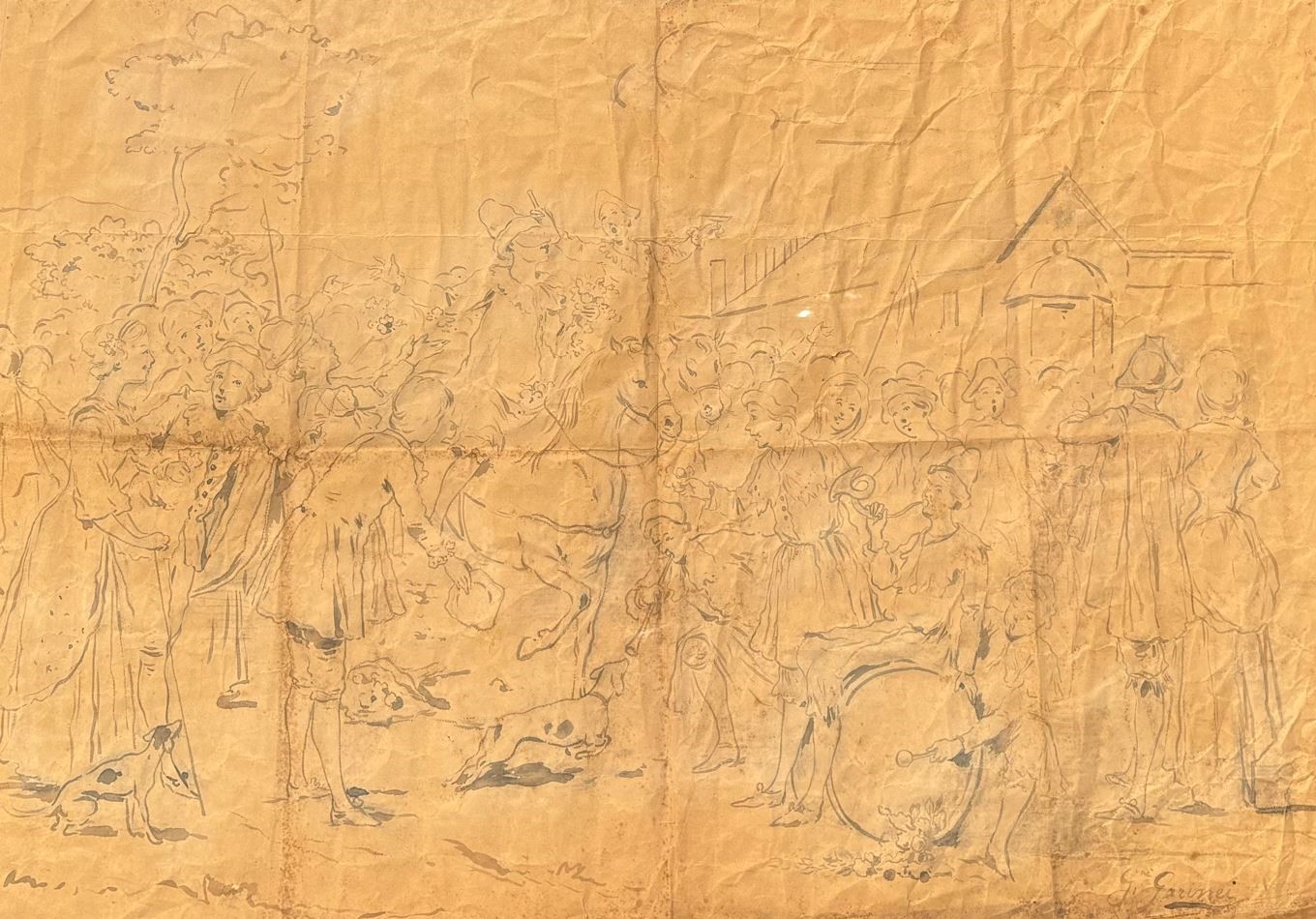 Giovanni Garinei (1846 - ) Bozzetto per la scenografia del "Rugantino" acquarello nero su carta 71 x 102 cm