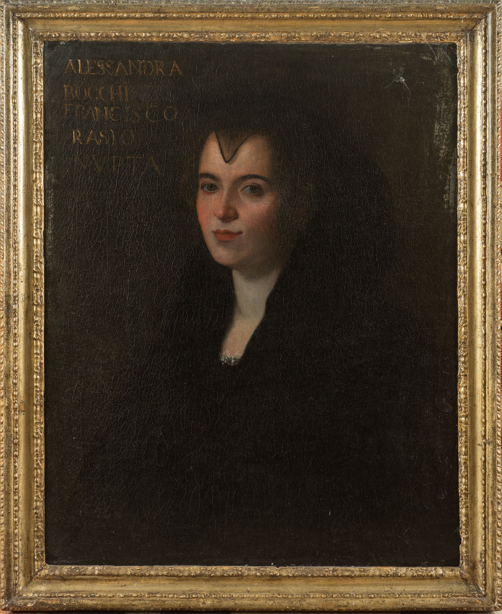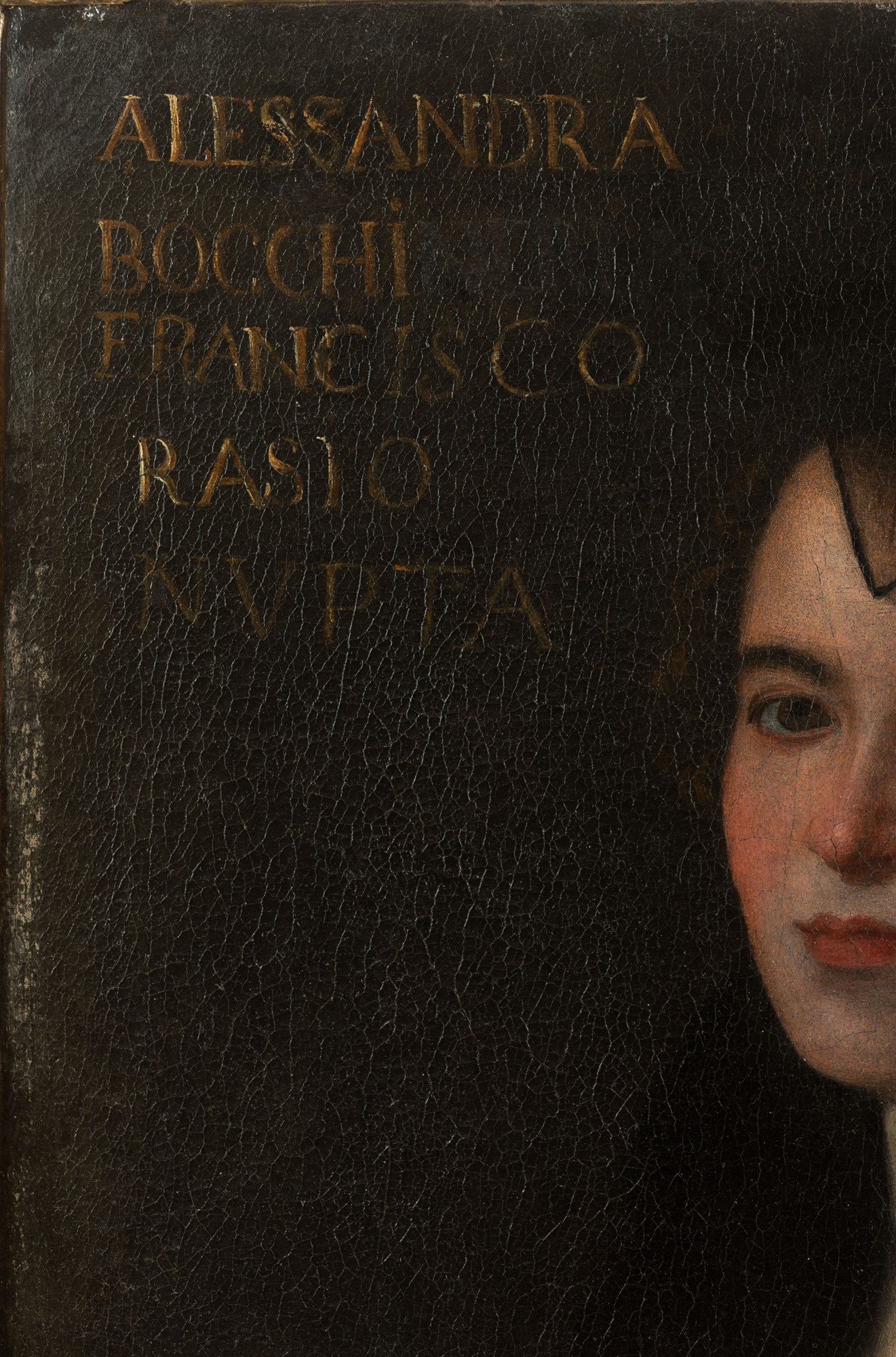 Grazie all'iscrizione sul fondo "Alessandra Bocchineri Francesco Rasio Nvpta" si identifica l'effigiata con Alessandra Bocchineri.