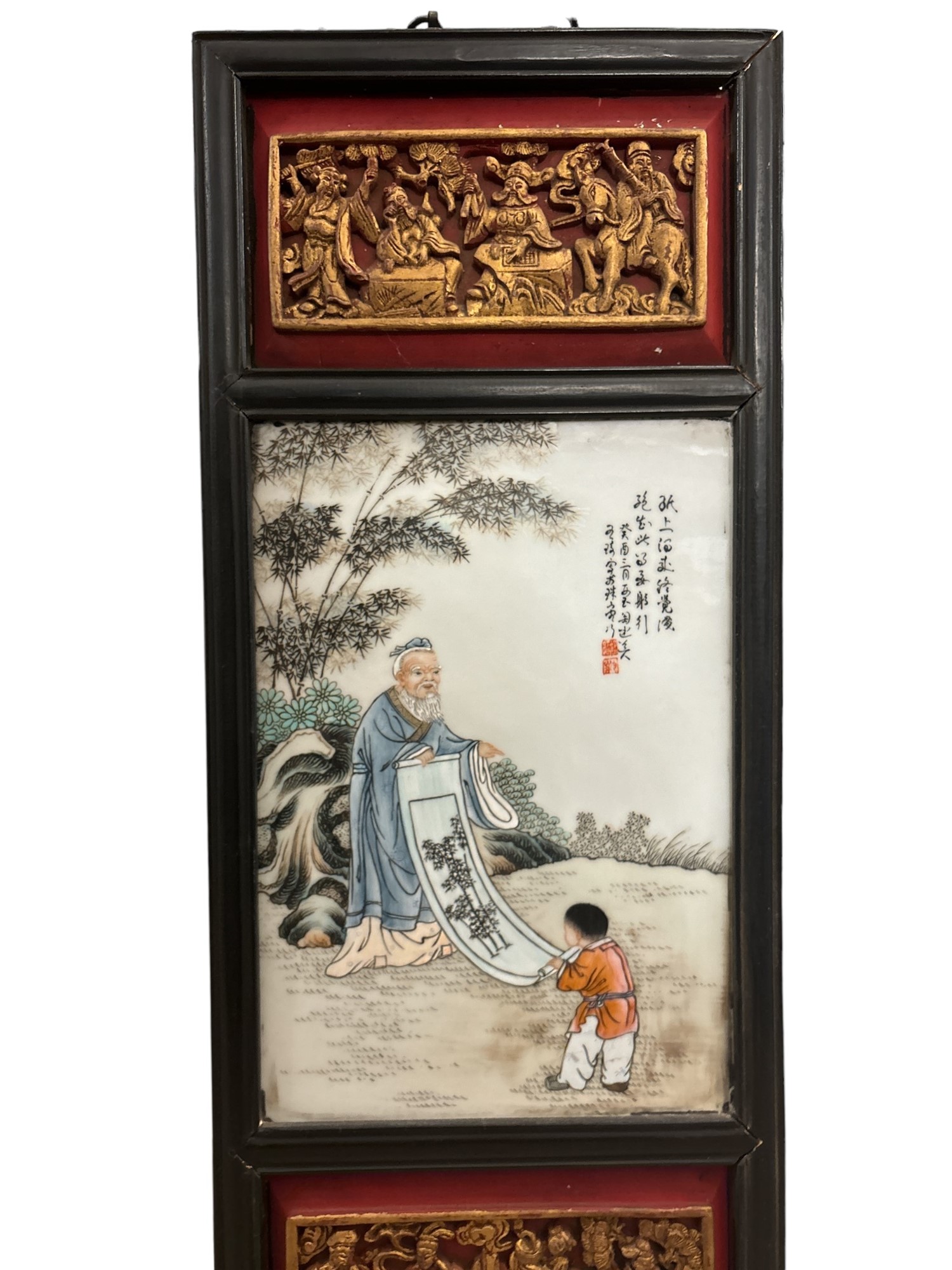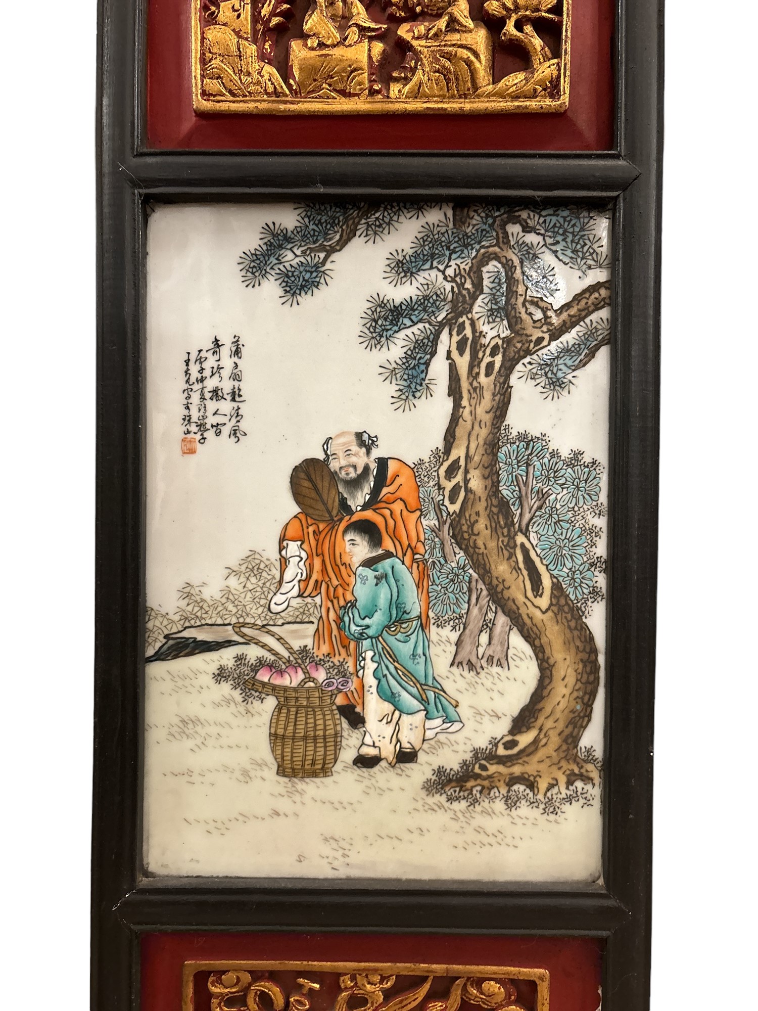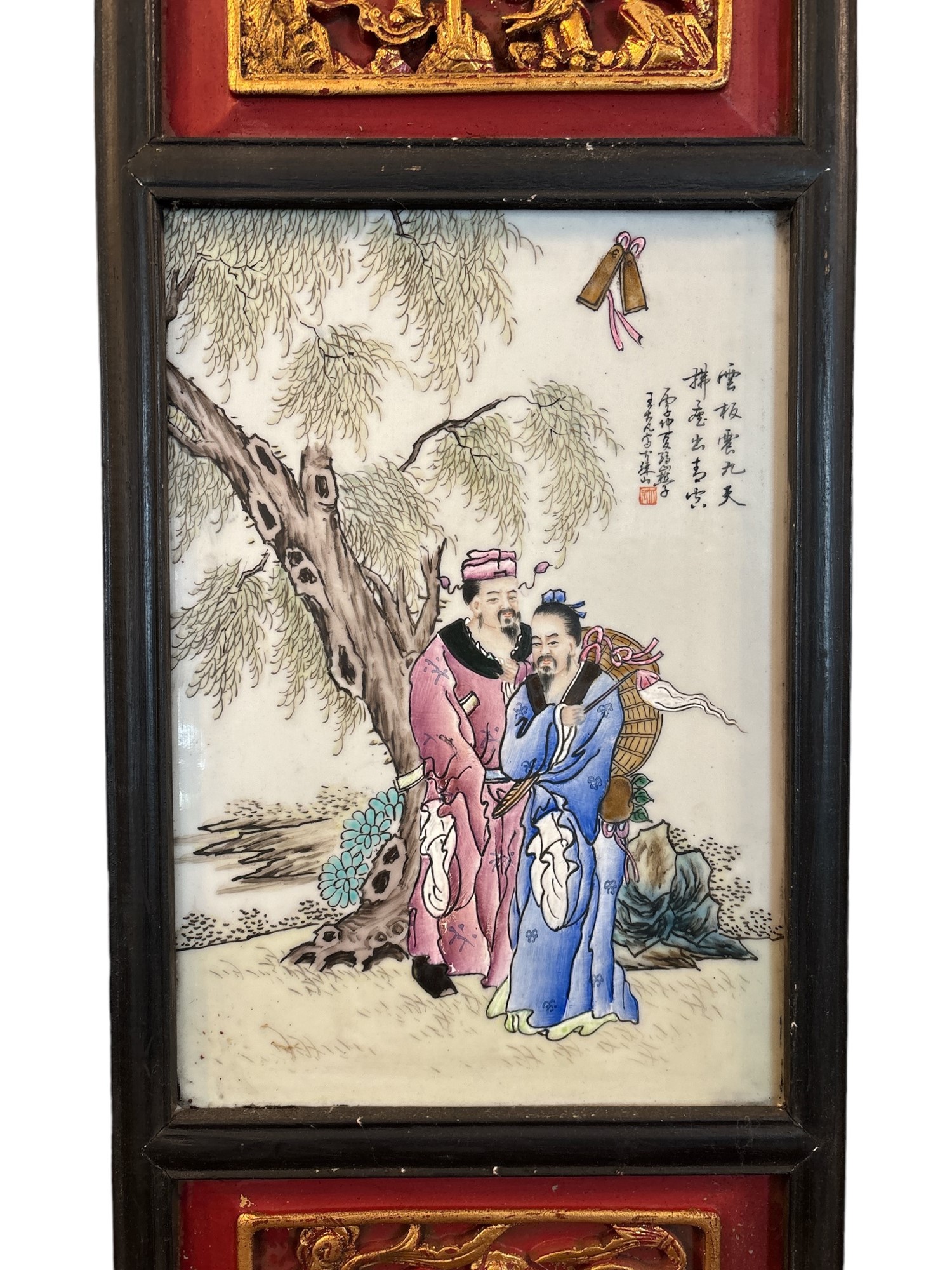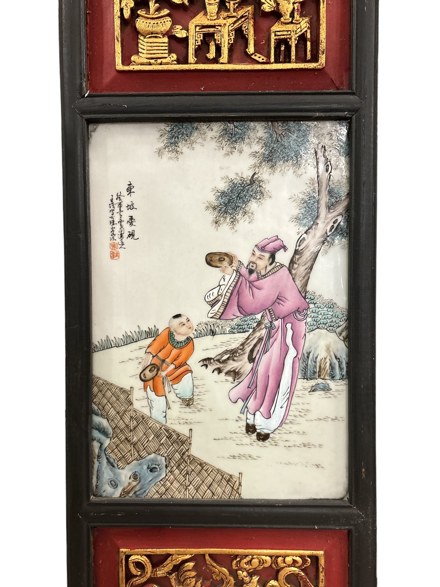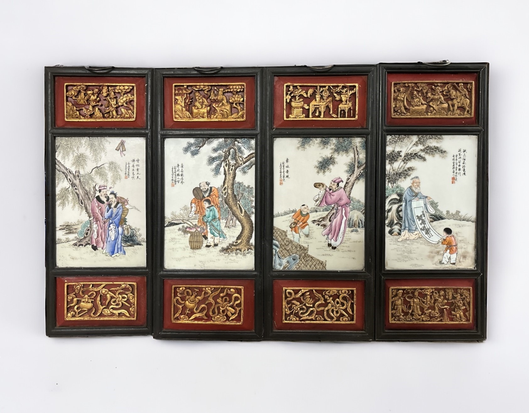 Quattro pannelli in porcellana policroma Cina XX sec. 72 x 29 cm
