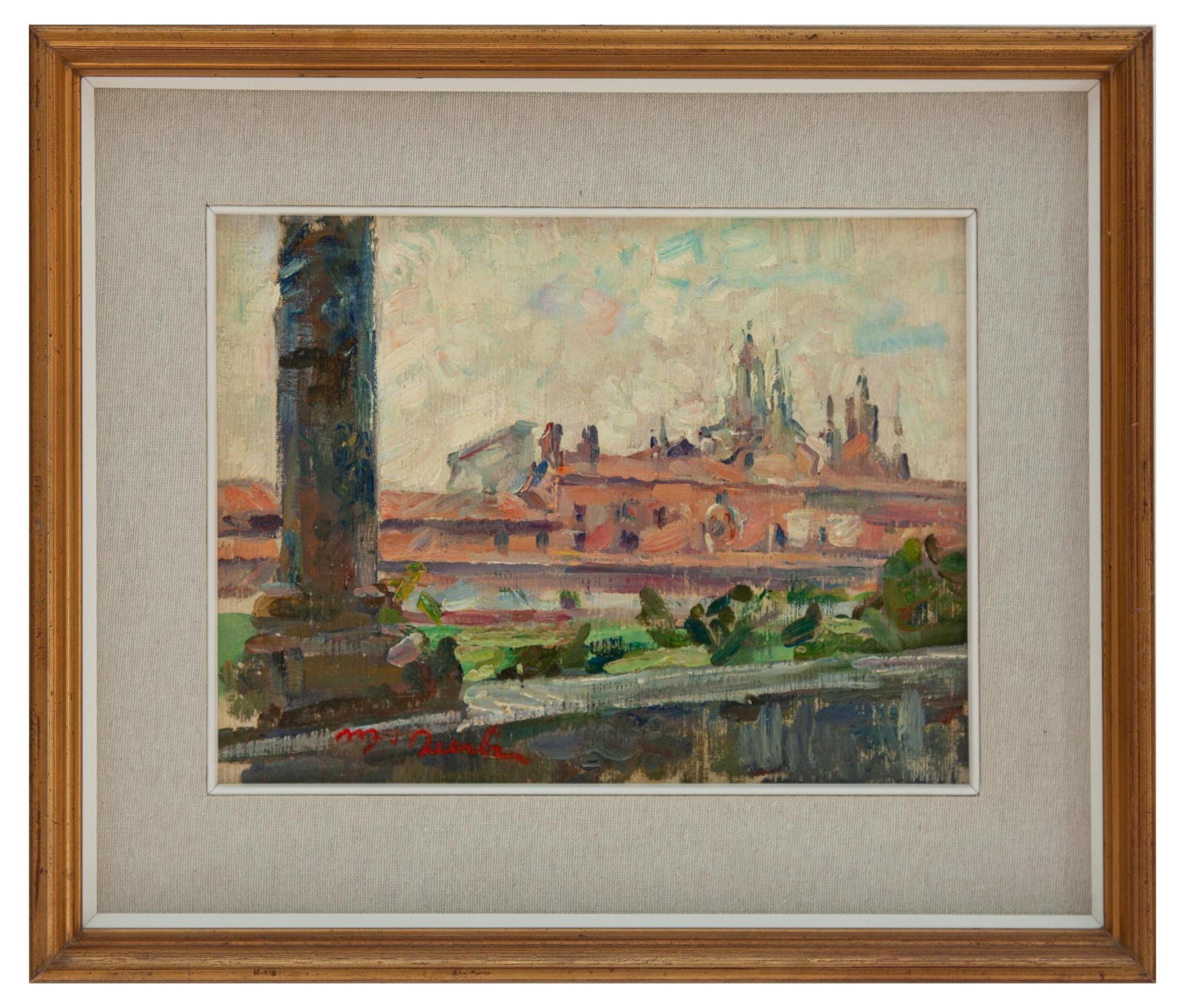 Mario Acerbi Milano 1887 - Pavia 1982 Scorcio di Pavia Olio su cartone cm 22,5x31,5