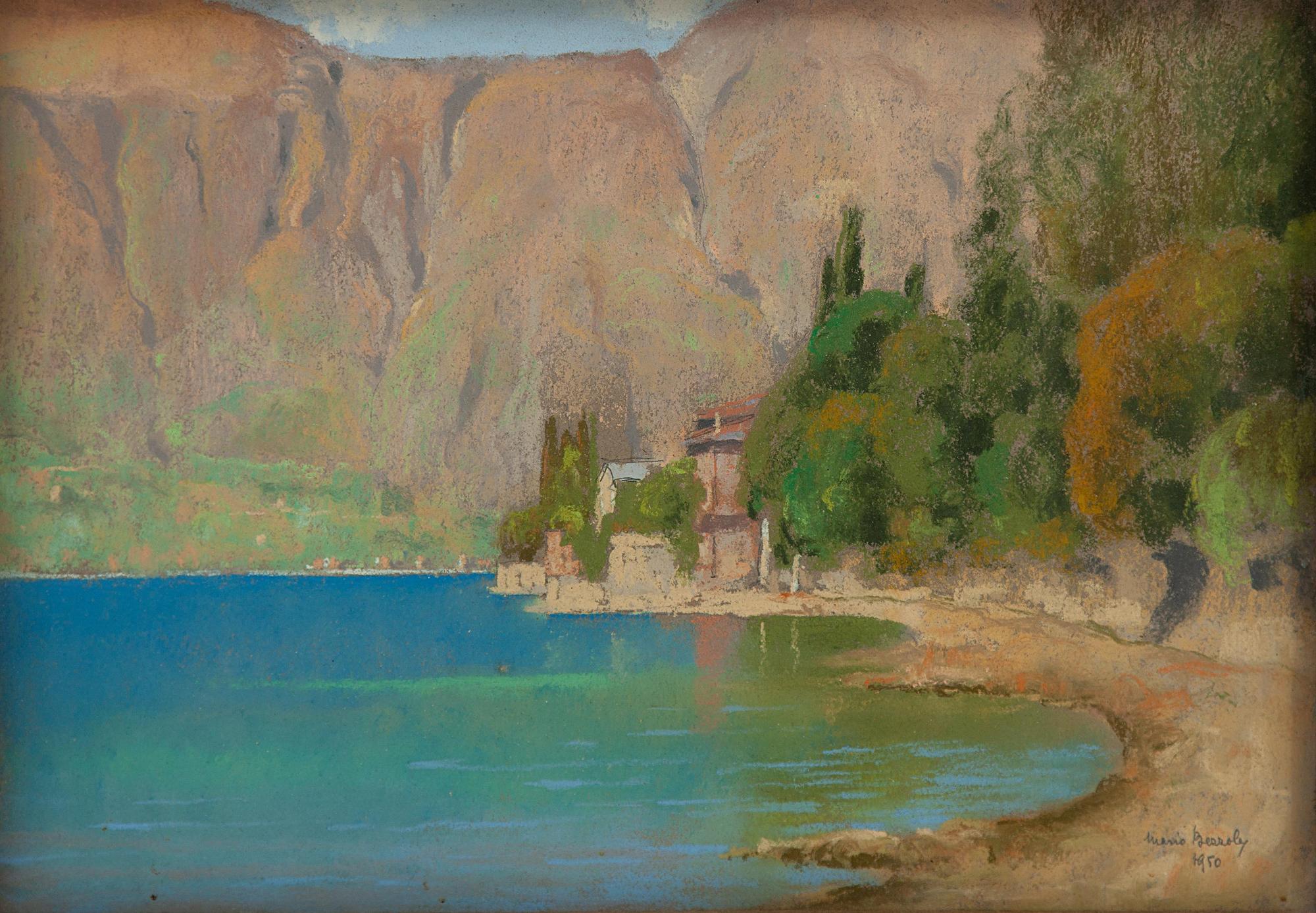 Mario Bezzola Milano 1881 - 1968 Lago Lombardo Pastello su carta cm 34,5x49,5