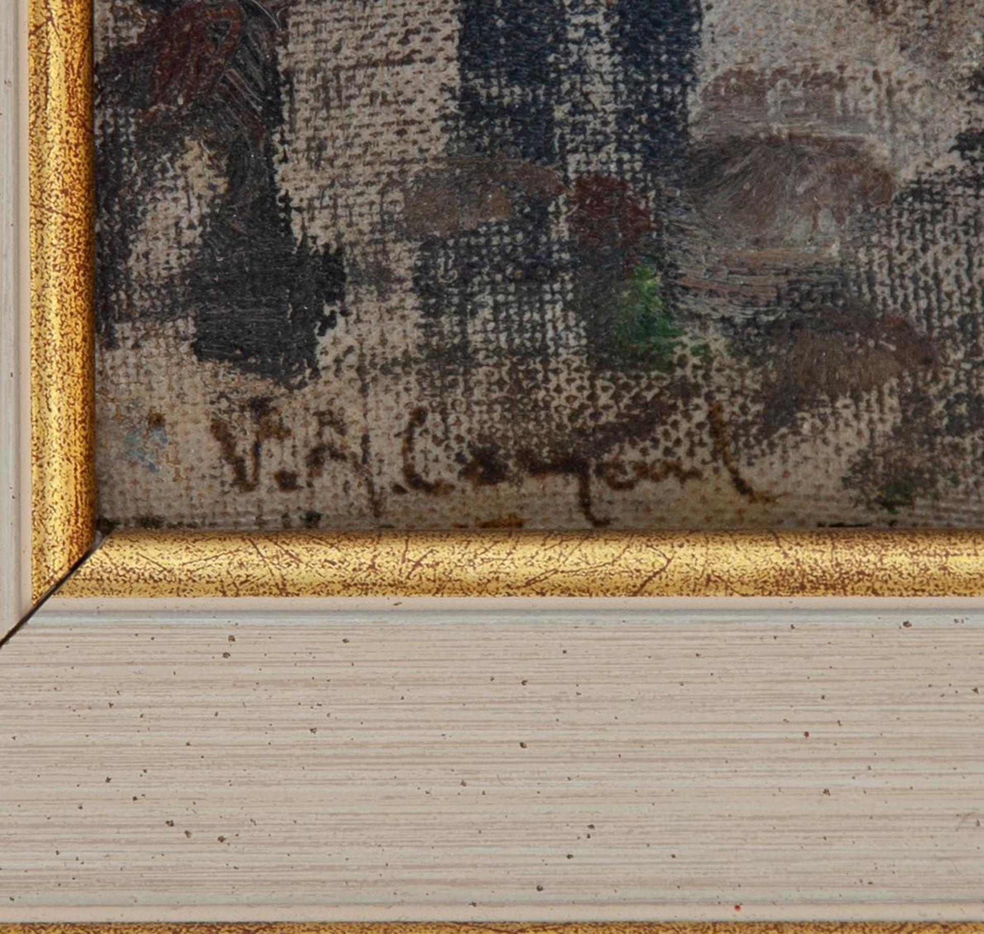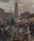 Vittorio Antonio Cargnel Venezia 1872 - Milano 1931 Mercato a Castelfanco Veneto Olio su tela applicata cm 23x29