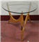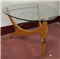 Tavolino da salotto con struttura in legno massello e ottone, piano in cristall