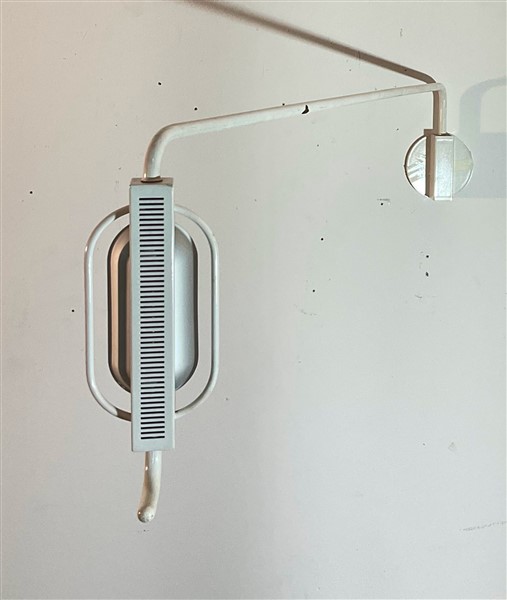 Lampada da soffitto alogena in metallo verniciato bianco. Italia, secolo XX. (l cm 95) (lievi difetti)