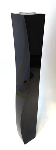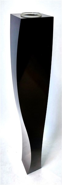 Vaso soliflore. Produzione Lino Sabattini, Bregnano, anni '90. Metallo laccato nero e vetro satinato incolore. (h cm 70) (lievi difetti)