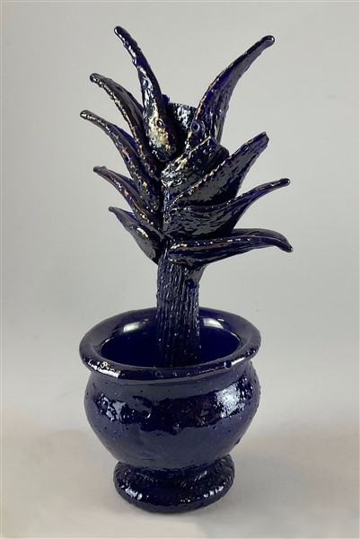 "Pianta grassa" Scultura in vetro pulegoso blu opaco iridato sulla superficie e