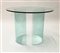 Tavolo in cristallo con piano circolare e sostegni in cristallo. Italia, anni '
