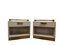 Coppia di comodini in legno laccato bianco a un cassetto con maniglie e guarniz