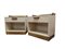 Coppia di comodini in legno laccato bianco a un cassetto con maniglie e guarnizioni in ottone. Italia, anni '70. (cm 60x56,5x40) (difetti)