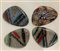 Gruppo di quattro ganci per appendiabiti da parete in rame smaltato in policromia. Italia, anni '60. (cm 16x11) (difetti)