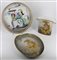 Lotto composto da un vaso, un vassoio e un piatto. Italia, seconda metà secolo XX. Porcellana policorma e oro. (difetti)