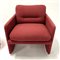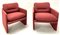 Coppia di poltrone imbottite a due posti e rivestite in tessuto vinaccia. Itali