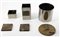Gruppo di tre scatole in acciaio con coperchi in bronzo a decoro astratto. Ital
