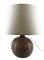 Lampada globulare in vetro soffiato a canne ritorte nei toni del verde, blu, ocra e arancio. Anni '80/'90. Paralume in carta.