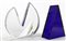Vaso scultura composto da due parti in cristallo incolore e blu trasparente. Francia, anni '70/'80. In scatola originale. (h cm 25)