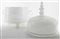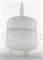Grande compostiera biansata in vetro incolore a reticello lattimo. Seconda metà secolo XX. (h cm 35)
