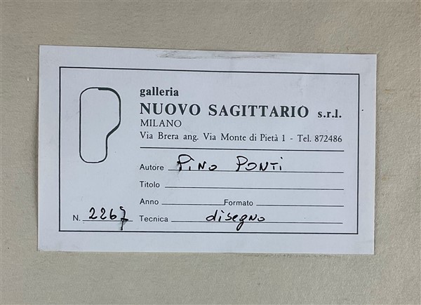 Pino Ponti "Senza titolo" tecnica mista su carta cm 21,5x17 firmato in basso a
