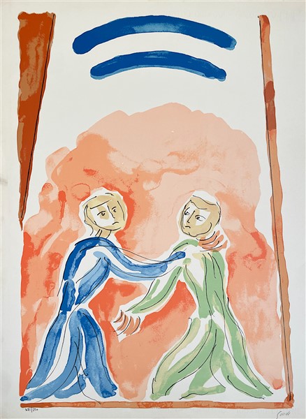 Virgilio Guidi "Incontro" stampa offset a colori cm 68,5x50 firmata e numerata