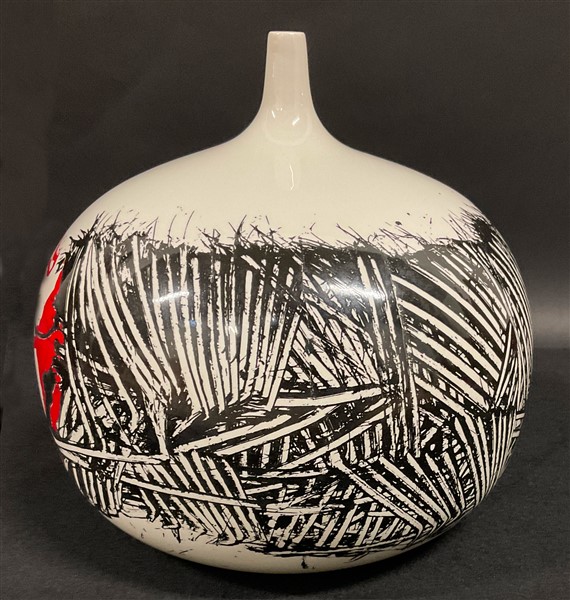Emilio Scanavino Vaso in ceramica smaltata e serigrafata h cm 30 Edizione Bolaff