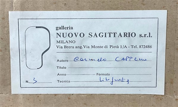 Galleria Nuovo Sagittario, Milano (etichetta al retro); collezione privata, Milano