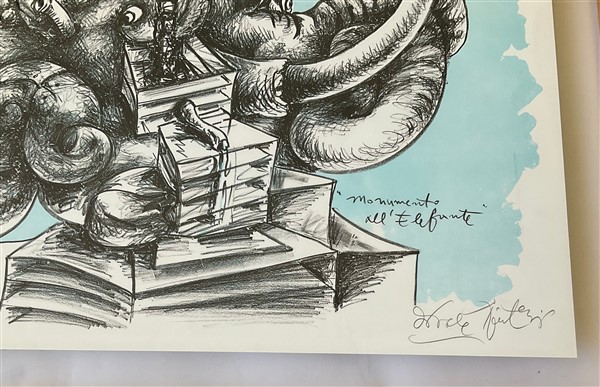 Ercole Pignatelli "Monumento dell'elefante" litografia a colori cm 49x66 firmat