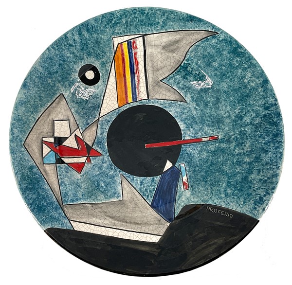 Lot 2096 | Proferio Grossi piatto in terracotta policroma smaltata diam, cm 43 firmato a pu