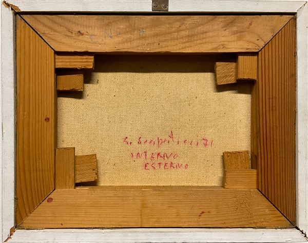 Giulio Scapaticci "Interno esterno" 1971 olio su tela cm 18x24 firmato, datato e