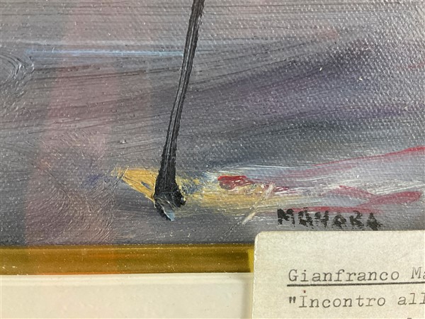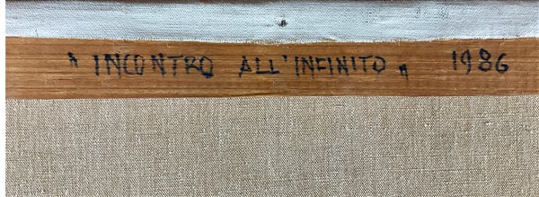Gianfranco Manara "Incontro all'infinito" 1986 olio su tela cm 50x60 firmato in