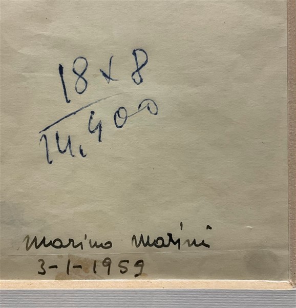 Opera accompagnata da certificato di autenticità su fotografia rilasciato dalla Fondazione Marino Marini, Pistoia con il n. 528
