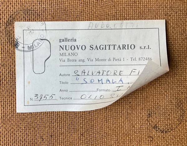 Salvatore Fiume "Somala" olio e tecnica mista su masonite cm 26x35 firmato in a