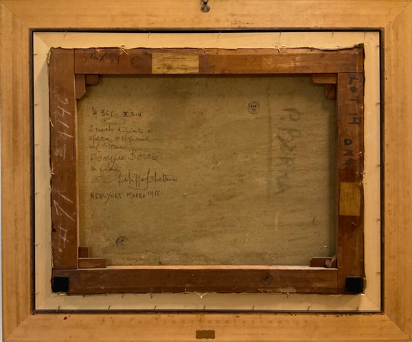 Firmato al retro e autenticato dal gallerista Schettini, New York 1956 al retro. In cornice (difetti)